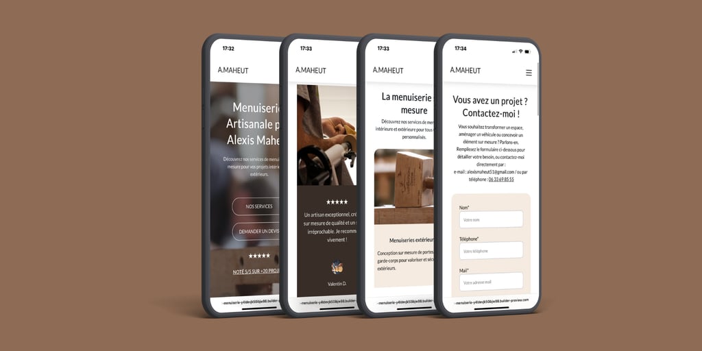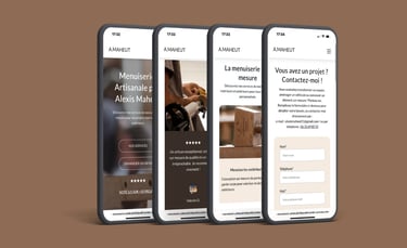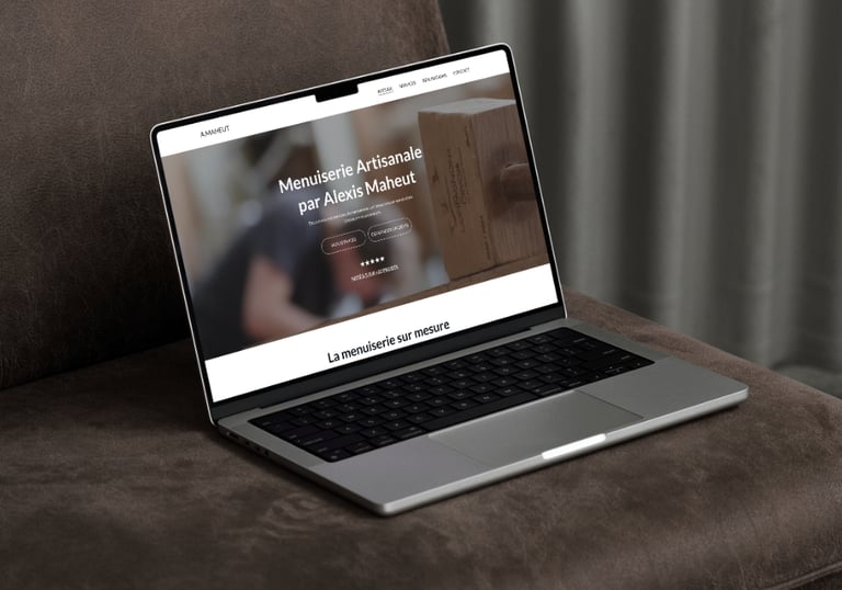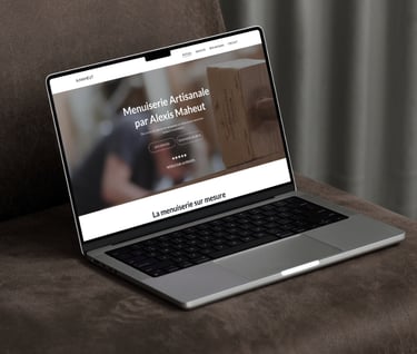Nous accompagnons Alexis Maheut, artisan menuisier spécialisé dans les réalisations sur-mesure. En 2024, nous avons travaillé ensemble pour améliorer sa visibilité locale. Nous avons conçu un site vitrine représentatif de son savoir-faire, réalisé des cartes de visite et des flyers personnalisés, et apporté notre expertise en création graphique. Une collaboration qui renforce son image et valorise ses services auprès de sa clientèle.